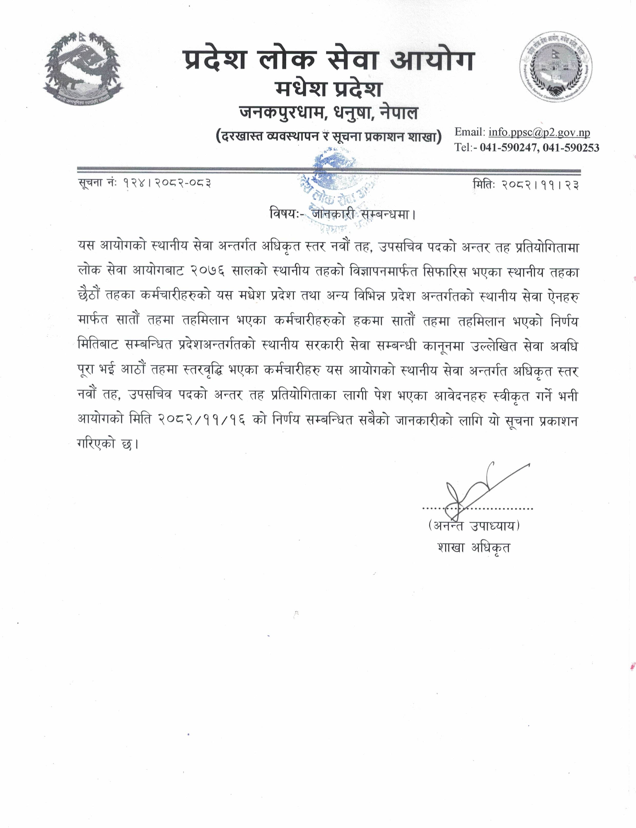 वि.नं. १५/२०८२-०८३ (खुला) प्रशासन सेवा,राजस्व समूह अधिकृत नवौं तहपदको अन्तर्वार्ता कार्यक्रम संशोधन गरिएको सूचना । |