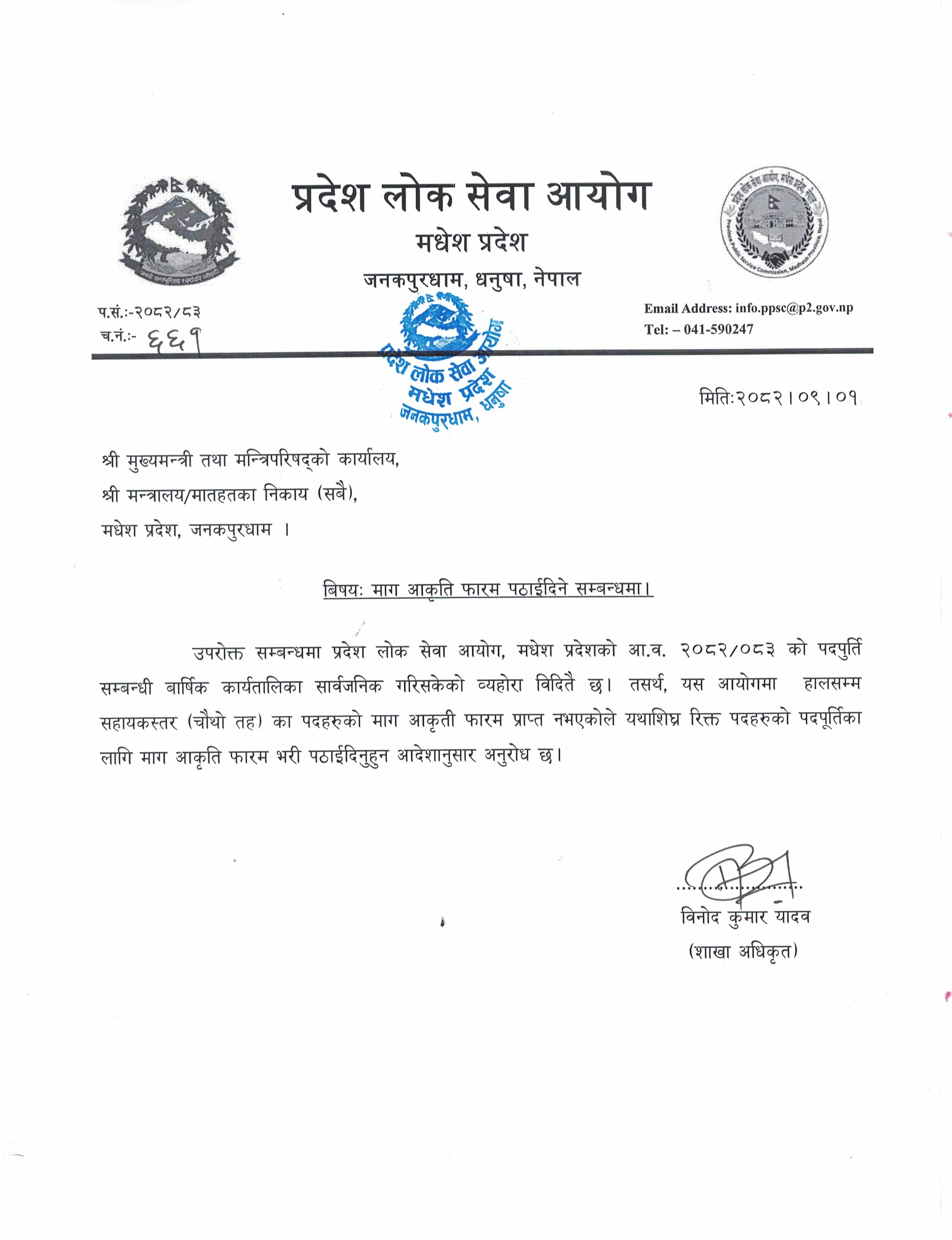 स्थानीय सरकारी सेवा अन्तर्गतको माग आकृति फाराम सम्बन्धी सूचना