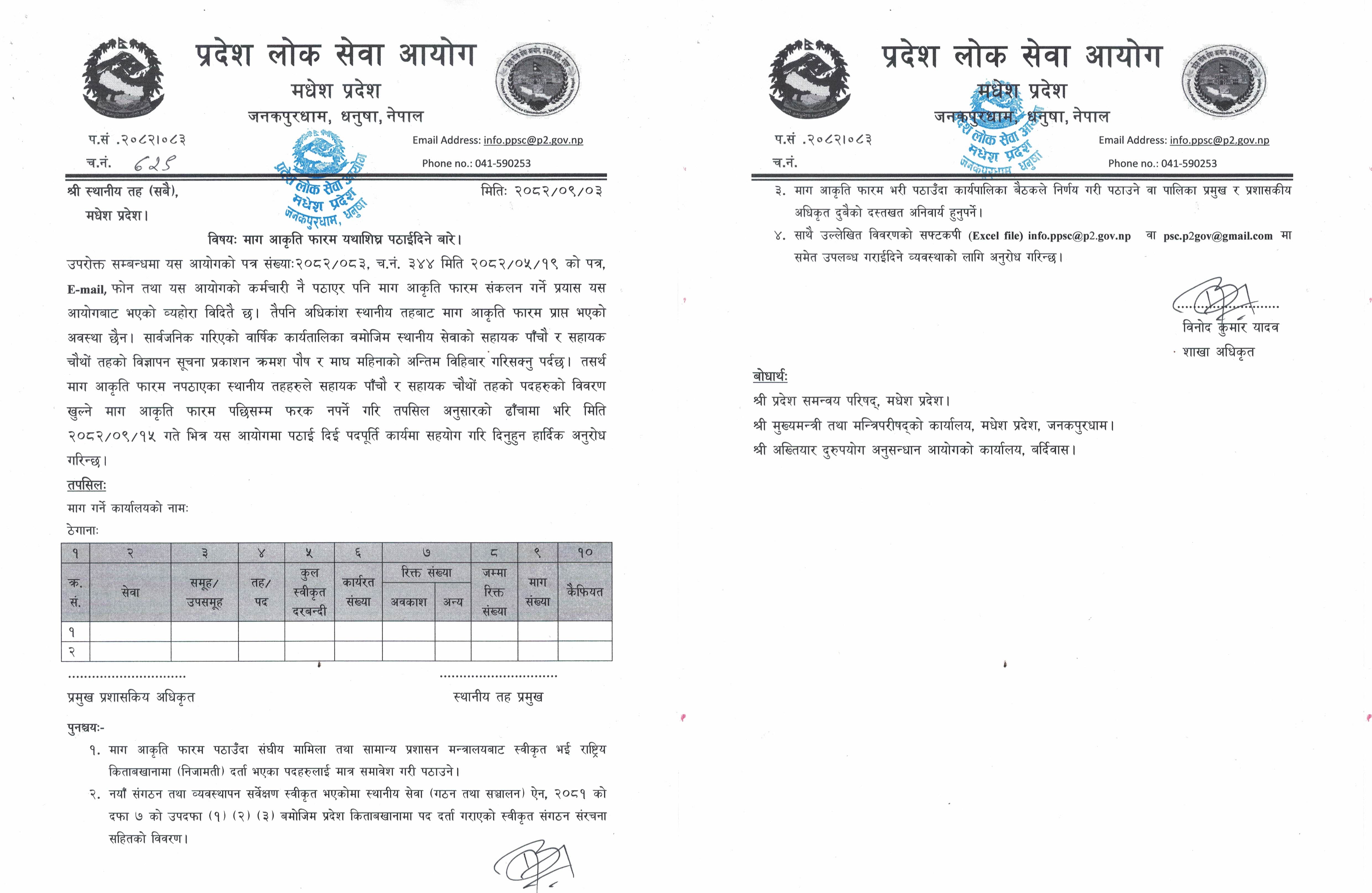 स्थानीय सरकारी सेवा अन्तर्गतको माग आकृति फाराम सम्बन्धी सूचना