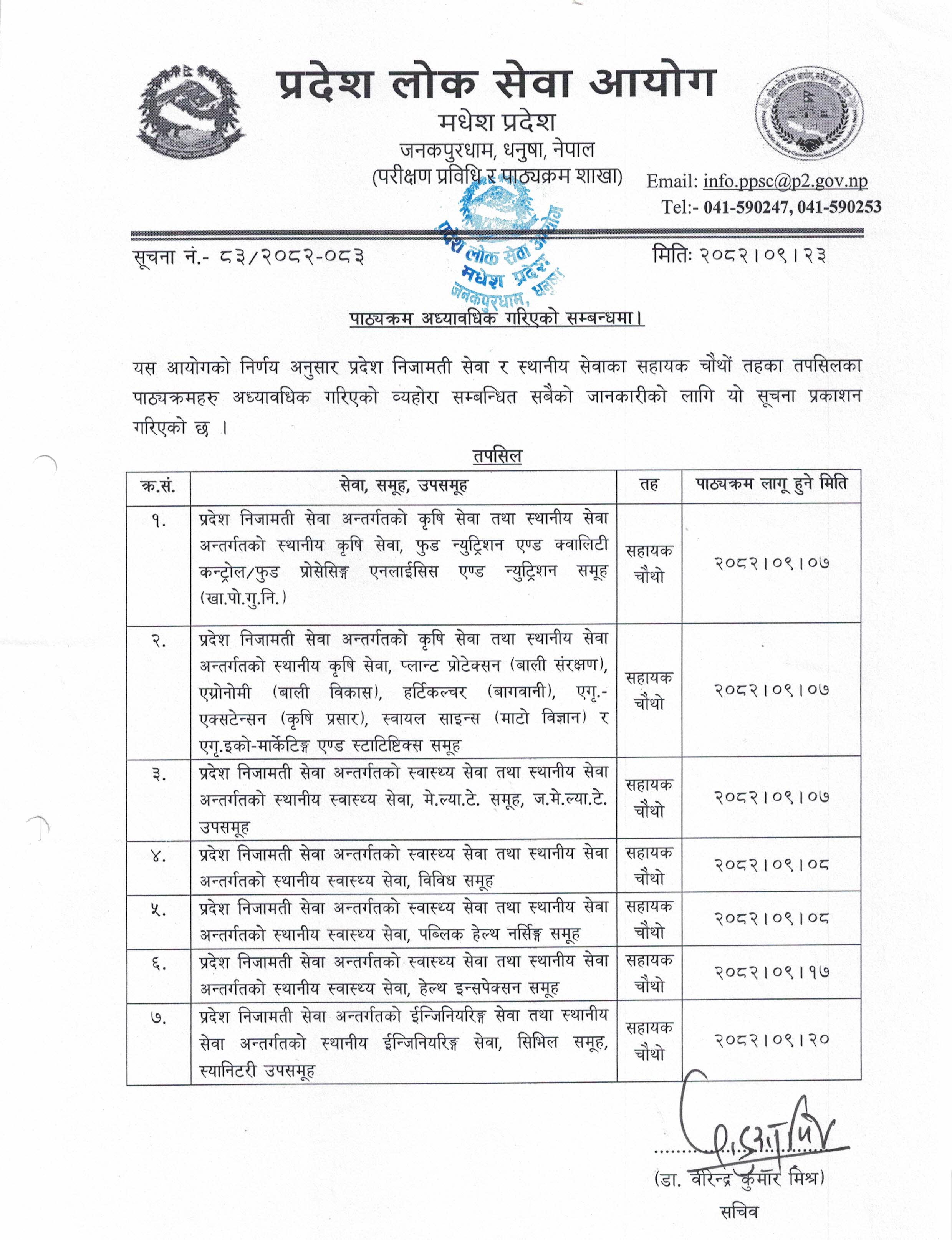पाठ्यक्रम अध्यावधिक गरिएको सम्बन्धमा